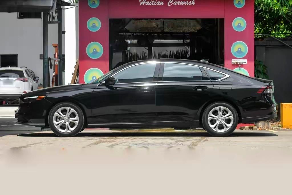 來到雅閣的車身側(cè)面,修長成為了主旋律,溜背式車頂以及貫穿前后的腰線,也更好增強了側(cè)面的動感韻味。尺寸部分,進行加長處理的雅閣,有著4980mm*1860mm*1450mm的長寬高以及2830mm的車身軸距。就雅閣的造型設(shè)計而言,還是挺契合年輕消費者審美訴求的,顏值高但不花哨,可謂是雅閣設(shè)計的精髓之處。