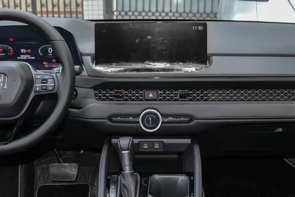 進入到雅閣的前排,平心而論,和動感至上的外觀設(shè)計對比,座艙造型的確有些遜色。對稱式的中控臺布局,一句話形容概括就是中規(guī)中矩,實用性強。不過在細節(jié)處理上,雅閣還是有一定新意可言的。例如貫穿設(shè)計的空調(diào)出風口和位于中間位置的快速調(diào)節(jié)按鍵,確保了實用性的同時,也有著較強的設(shè)計美感。12.3英寸的懸浮式中控顯示屏,內(nèi)置Honda Connect4.0系統(tǒng),支持主流的手機互聯(lián)以及OTA升級,智能化表現(xiàn)能夠較好滿足主流消費者的用車需求。