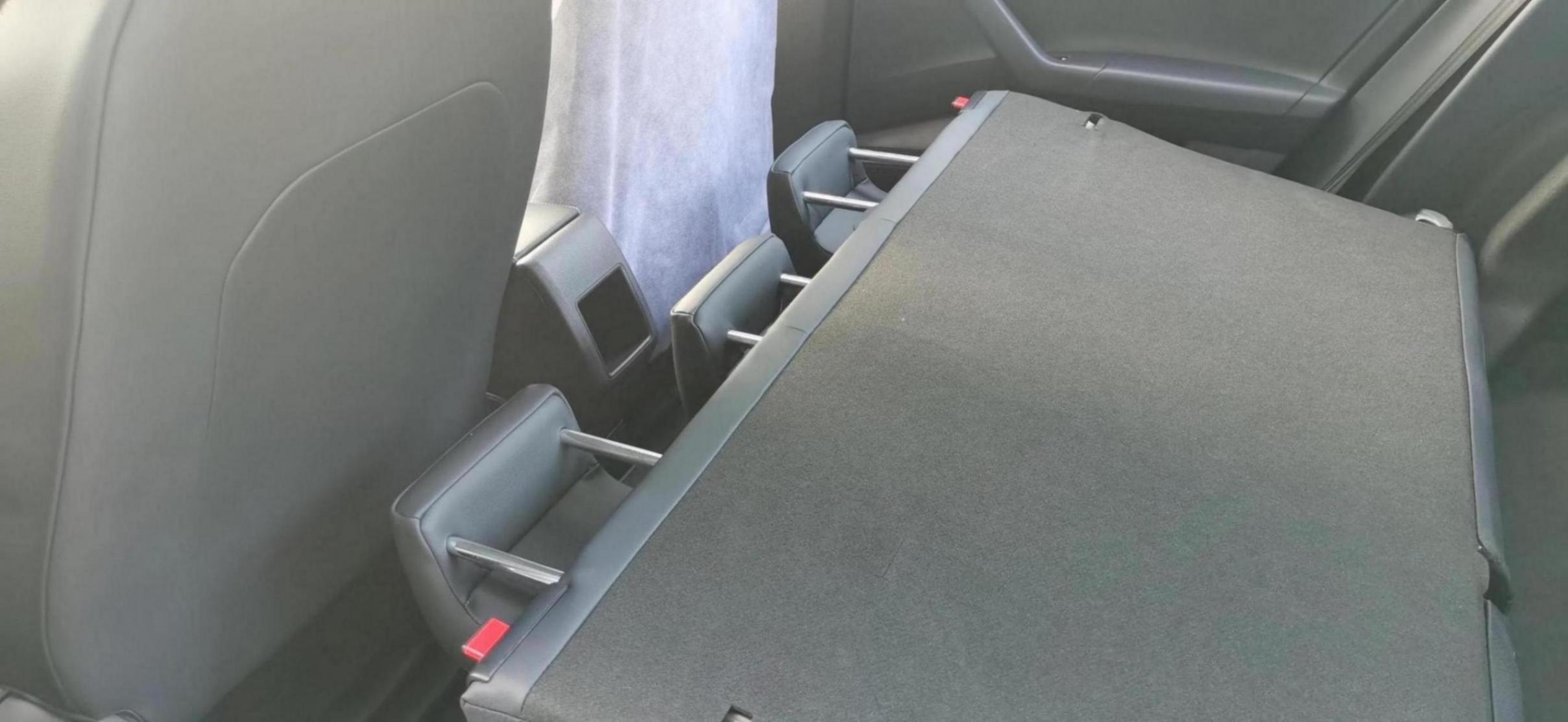 前排中央扶手,中央扶手帶儲物盒功能,前排帶12伏電源,它的手剎是老式的機(jī)械手剎,后排座椅可以整體放倒。
