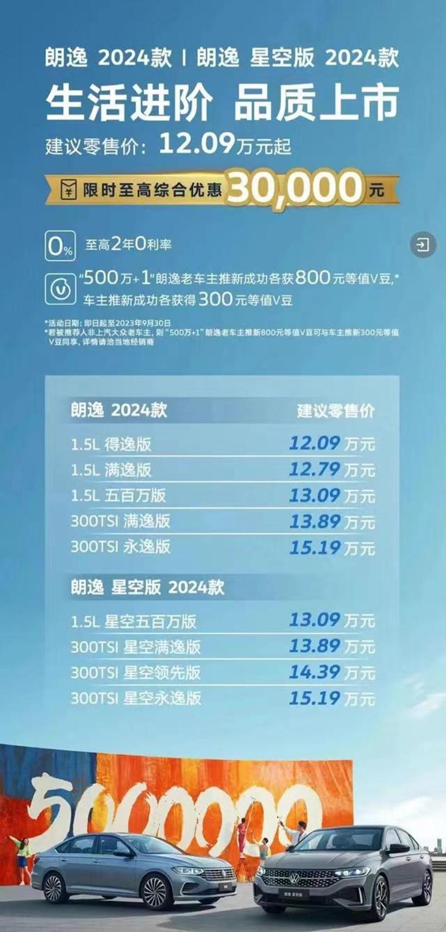 與此同時,上汽大眾還推出了限時優惠活動,即日起至9月30日,購買2024款朗逸可享受至高綜合優惠3萬元、至高2年0利率等購車禮遇。