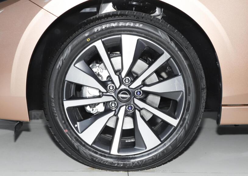 而輪轂的中心是日產顯眼的標志logo,輪胎采用的是鄧祿普這樣的大品牌,顯示了其使用特定品牌的高品質輪胎。