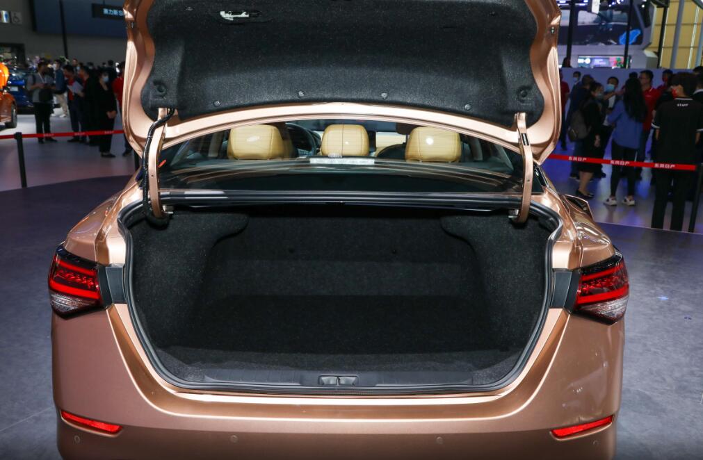 值得一提的就是,軒逸的后備箱內襯為黑色,與車輛的日出金色漆的外觀形成對比。邊緣和表面看起來光滑,易于清潔。