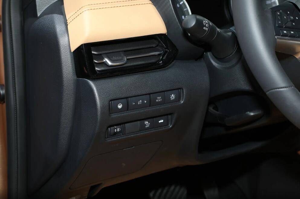 在旋鈕之間,一排按鈕用于控制空調方向、循環模式和后窗除霜功能。緊急情況警告按鈕位于兩個旋鈕的正上方,方便車輛在遇到緊急情況時,便于駕駛員在需要時進行操作,一步到位。