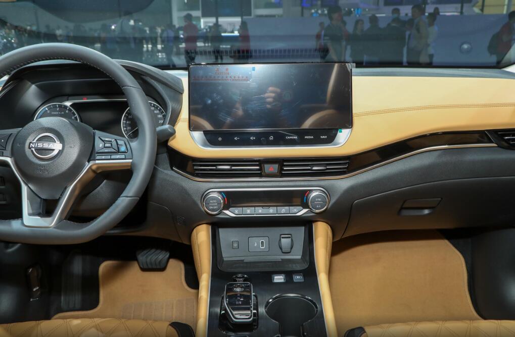 好了,重點要來了,軒逸內飾最核心的地方,即就是中控臺。坐在后座中央略微俯視,我們可以看到內飾跟門板一樣,都是采用了黑色和淺棕色的雙色設計,營造出一種時尚而高級的感覺。