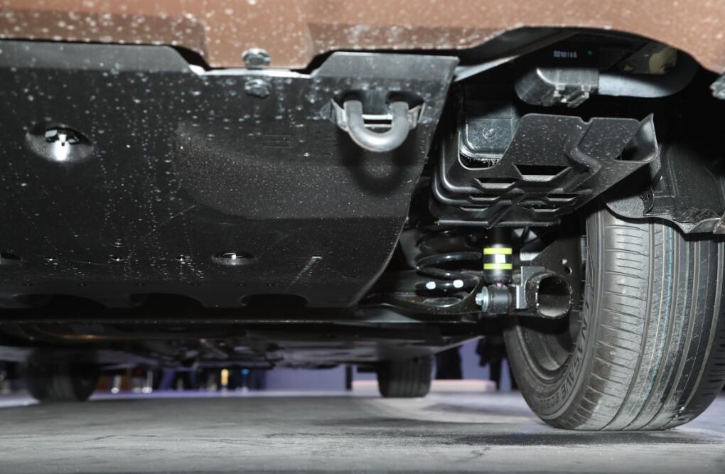 值得一提的就是,底盤防護板非常的堅硬牢固,覆蓋了底部的主要部分,這有助于保護底盤免受路面碎石和其他潛在損傷的影響,同時也可能對車輛的空氣動力學性能有所幫助。