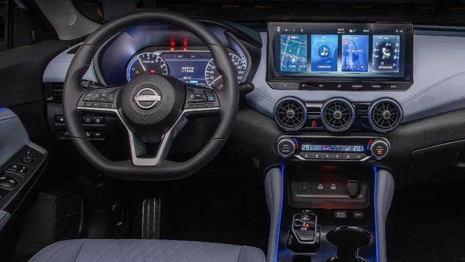 超混電驅軒逸的車內設計采用了對稱式布局,中控臺則采用淡藍色與黑色的撞色拼接,以呼應車身顏色。溫馨、自然、享受:整體設計給人一種溫馨、自然和享受的感覺,可以通過色彩、材質和布局等方面的設計來營造這種氛圍。淡藍色區(qū)域采用軟皮材質包裹,這種材質的選擇能夠提供一種舒適的觸感,同時也能增添一絲豪華感。而縫線處理也顯得有條不紊,為中控臺增添了曲線美感。