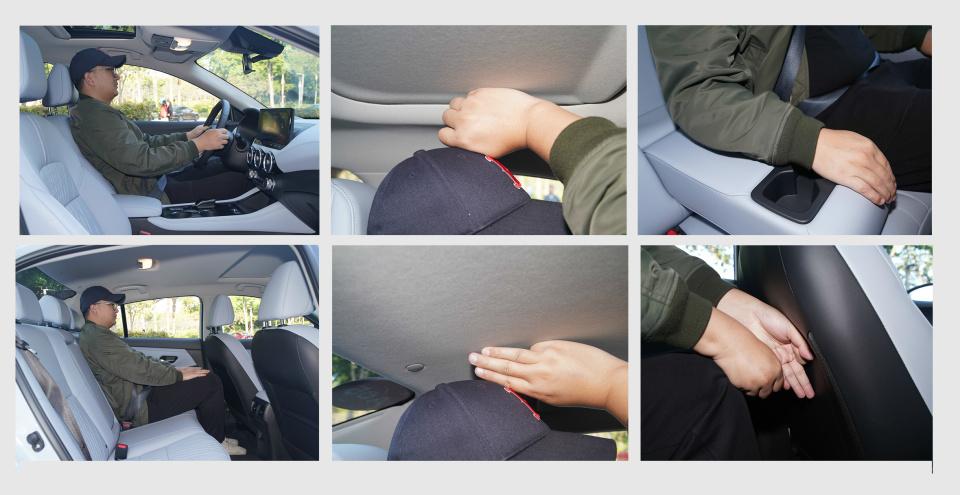本次體驗者身高1.75米,體型適中。乘坐主駕駛位時將座椅調整至最低,頭頂距離車頂大約有1拳有余的空間,腿部活動空間寬敞,再前排座椅保持不變的前提下落座后排,頭部剩余3指空間,膝蓋與前排座椅大約1拳3指的距離,這樣的座椅設置可以給駕駛者提供舒適的頭部空間和充足的腿部活動空間,而且后排座椅橫向寬大,即使并排乘坐3個成年人也不會感覺擁擠。再加上舒適的座椅,長途出行也不會感覺太過于疲勞。