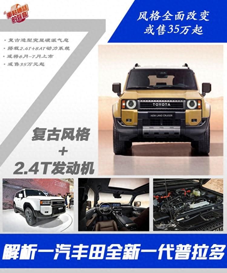 要說(shuō)現(xiàn)在市場(chǎng)上的硬派SUV真的是一個(gè)很受關(guān)注的細(xì)分車(chē)型,無(wú)論是之前的坦克300還是之后的坦克700,再到今年即將上市的福特烈馬,它們都是硬派SUV,但是要說(shuō)知名度,它們肯定沒(méi)有豐田普拉多的知名度高。作為硬派SUV的代表,豐田普拉多在很多越野人心中都有著很高的位置。就在2023年11月的廣州車(chē)展上,一汽豐田全新一代普拉多正式亮相,而它也將會(huì)在今年的第三季度正式上市,而這個(gè)具體時(shí)間則很有可能是6月或者7月,并且價(jià)格也很有可能會(huì)在35萬(wàn)元左右。