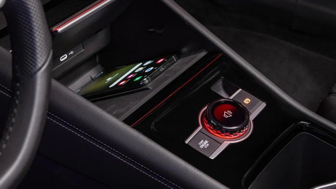 在中央島臺位置,老款車型略顯廉價且容易臟的烤漆面板被取消,新款改成了更有質感的皮質包覆。同時,老款車型前排僅提供一個15W無線充電位,而新款則升級成了兩個帶有風冷的50W無線充電面板。