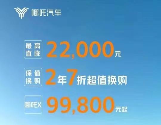 緊跟著,哪吒汽車鄭重宣布,哪吒X全系價格直降22000元,新車9.98萬元起;哪吒AYA 全系價格直降8000元;哪吒S全系價格直降5000元。
