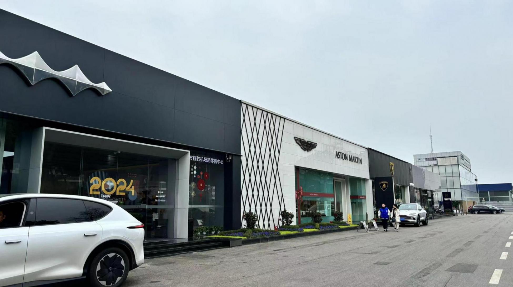我當時是幫駕仕派去提這臺長測車,到了體驗中心我就驚呆了。體驗中心所在的位置我很熟悉,就是三和的豪車走廊。原本這家店應該是來自于英國的摩根復古跑車,因為當下的車市現狀嘛,摩根就沒做了。我問了一下,這家方程豹體驗中心是廠家直營的,等于是三和把這家店租給了比亞迪。這可能也算是方程豹在全國最有逼格的選址了吧,隔壁就是阿斯頓馬丁蘭博基尼勞斯萊斯。