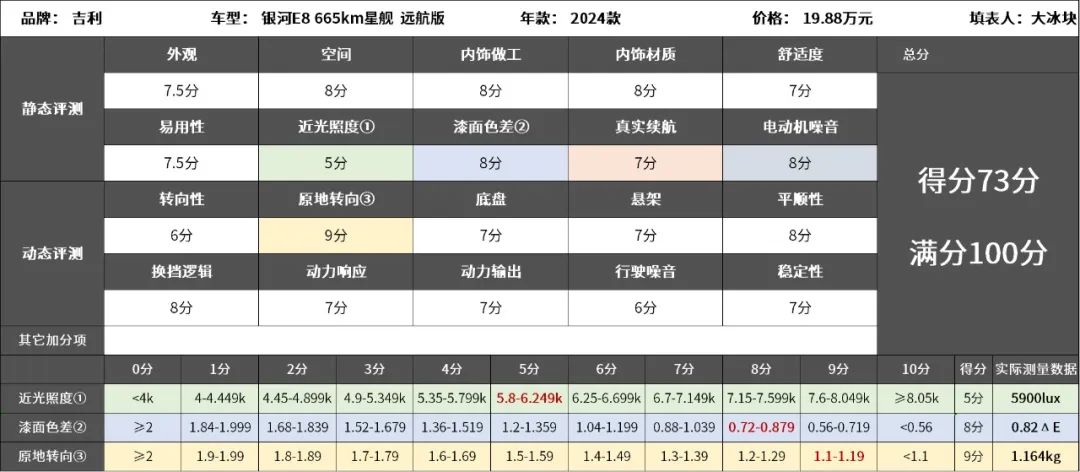 2024款吉利銀河E8試駕評分