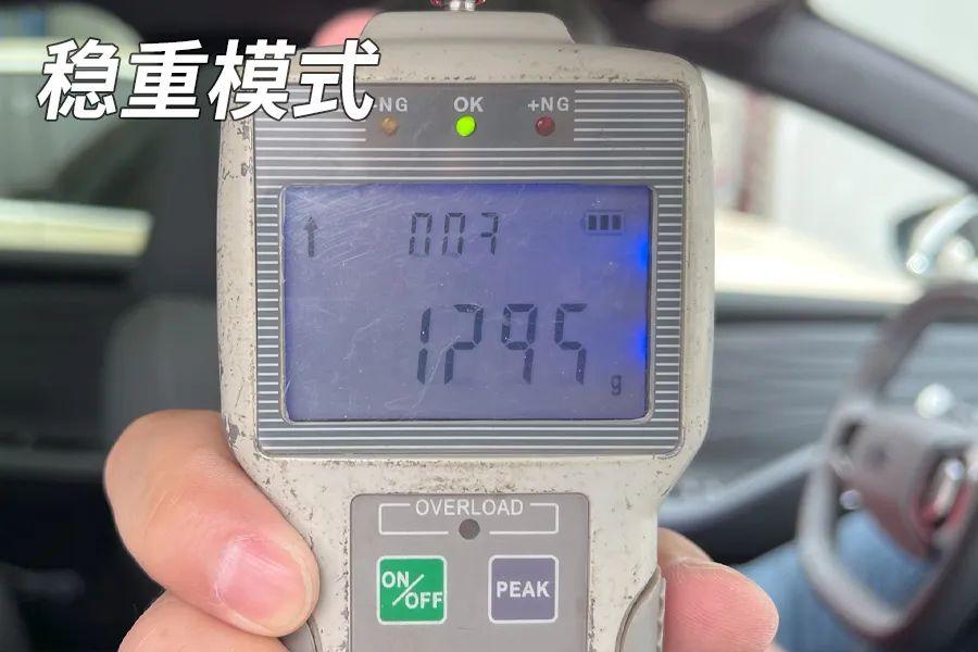 這輛車的轉向模式有三種,標準、輕柔和穩重。標準模式下,方向盤轉向力為1.164公斤;在輕柔模式下,方向盤轉向力為0.957公斤;在穩重模式下,方向盤轉向力為1.295公斤。方向盤力度相當輕松,低速轉向和停車入位比較方便。
