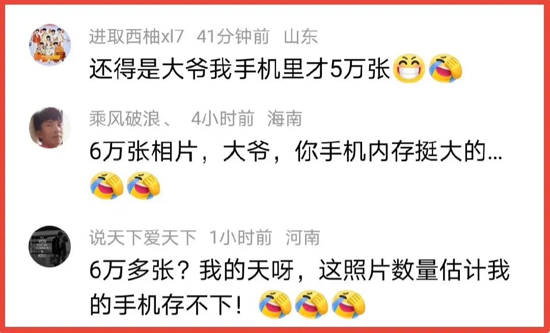 “還得是大爺,我手機(jī)里才5萬(wàn)張。”