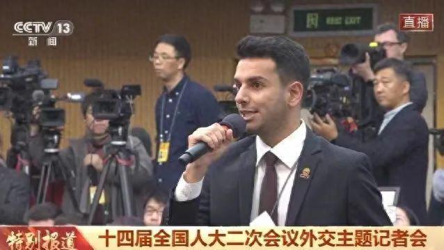 3月7日上午,十四屆全國人大二次會議在梅地亞中心新聞發布廳舉行記者會。發布會最后,來自迪拜的中阿衛視記者方浩明,用一口流利的中文向王毅外長提問。
