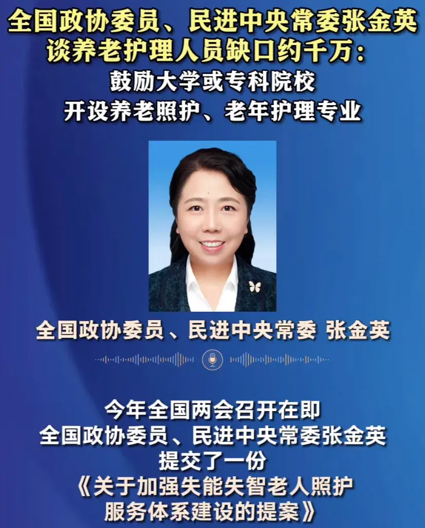 4.張金英:養老護理人才缺口約千萬,鼓勵大學或??圃盒i_設老年護理、養老照護專業
