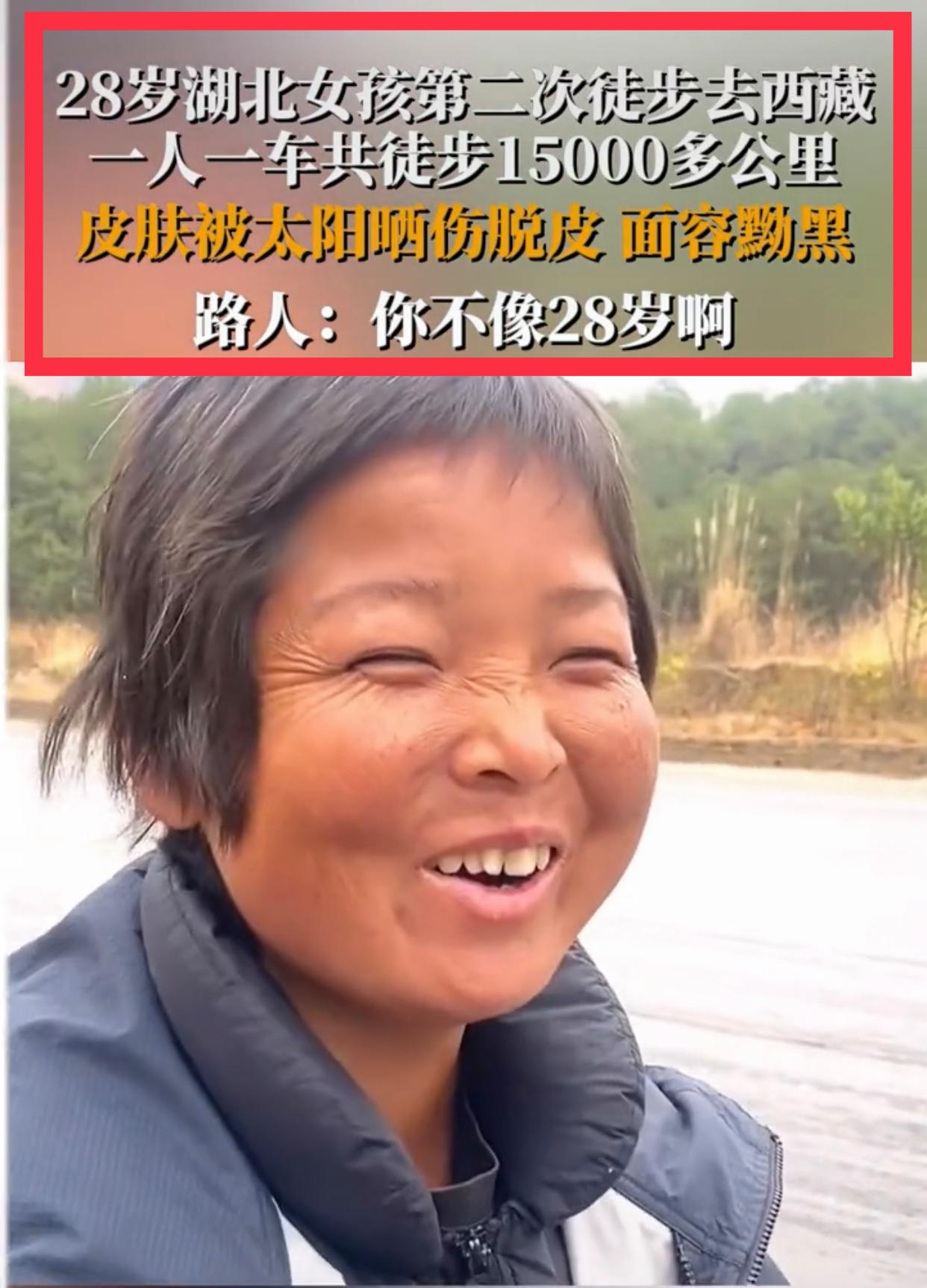 最近湖北武漢一位女背包客徒步走紅,她自稱年齡28歲,有博主現場訪談她感覺不信,被紫外線曬傷的皮膚,一臉高原紅,頭發干燥夾雜一些白發,如果不是她自己說出真實年齡28歲,加上曬出徒步以前一頭長發飄飄的美少女,外人看來就是58歲,用10年前川藏線上一位騎行網紅形容自己去西藏前后顏值對比話說(當初裝叉去西藏,現在變成這般樣,連爹媽都不認識,誤以為就是藏民)。