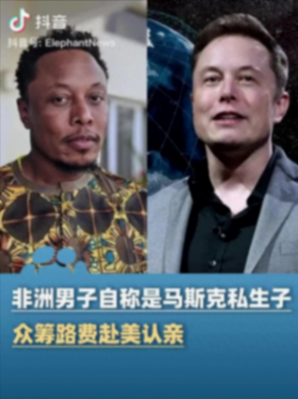 引子:近日,一名來自非洲的男子自稱是科技大亨馬斯克的私生子,并于網上發起眾籌,希望湊齊路費赴美認親。這一消息一經發布,迅速引發了廣泛的關注與討論。究竟這位自稱馬斯克私生子的非洲男子說的是真是假?背后又隱藏著什么樣的故事呢?我們不妨從多個角度進行分析和探討。