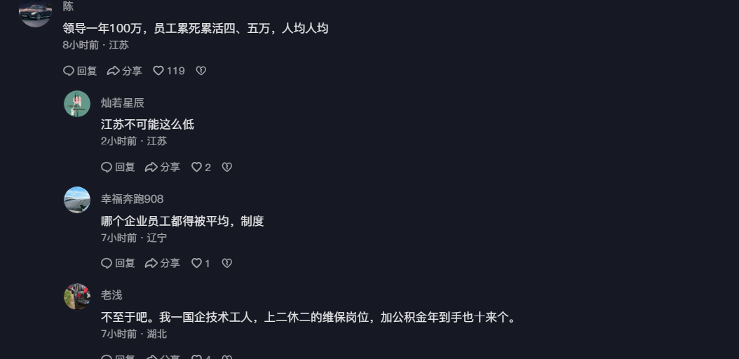這領導一年100萬,可真是“高薪養廉”啊!不過看看員工們,四、五萬累得跟什么似的,人均一下似乎大家都成了“小富翁”,可這差距嘛,咋就這么大呢?哈哈,人均人均,領導笑哈哈,員工淚嘩嘩。