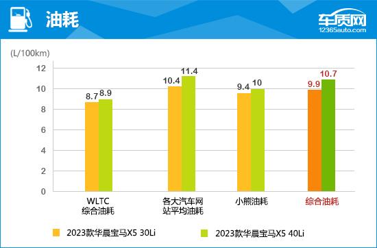 車質網綜合各汽車垂直網站的統計數據,得出2023款華晨寶馬X5 30Li的車主綜合油耗為9.9L/100km;40Li的車主綜合油耗為10.7L/100km(僅供參考)。