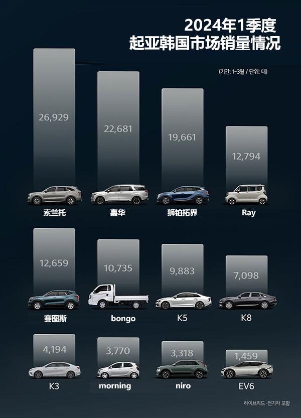 起亞2024年3月在全球市場銷售272026輛,同比減少2.4%,其中韓國市場49006輛,海外市場22.2705萬輛,特殊車輛315輛。(以批發(fā)銷售為準(zhǔn))