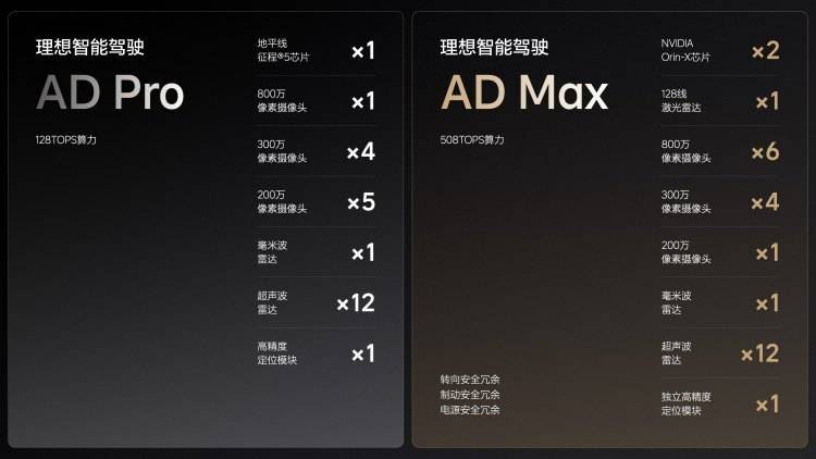 理想L6 MAX版本則是搭載的兩顆英偉達Drive Orin-X芯片,單顆算力254 TOPS,總算力508 TOPS。