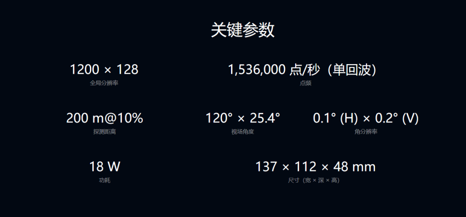 具體參數上,這顆激光雷達與理想L6上所搭載的沒有區(qū)別,整體分辨率為1200×128,能夠在200米的距離內實現10%的反射率探測。其探測范圍覆蓋了120°×25.4°的視場角。