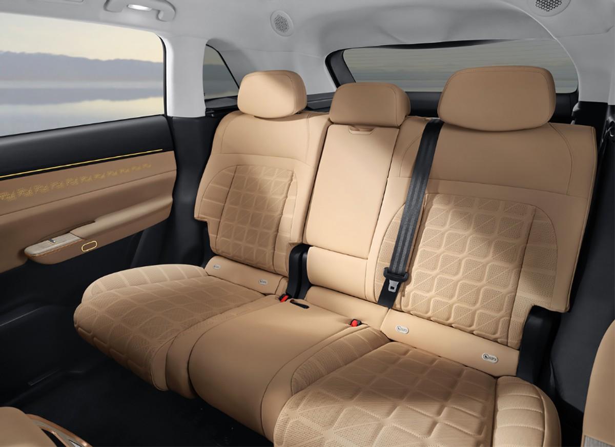 內飾部分十分簡潔,全液晶儀表盤位置上移,懸浮式中控屏尺寸達到15.6英寸,橢圓形方向盤辨識度挺高。新車軸距達到3米,車長近5米,內部采用五座布局,后排座椅的待遇比較高,支持電動調節和加熱,這個尺寸的大五座SUV,乘員體驗還是相當不錯的。