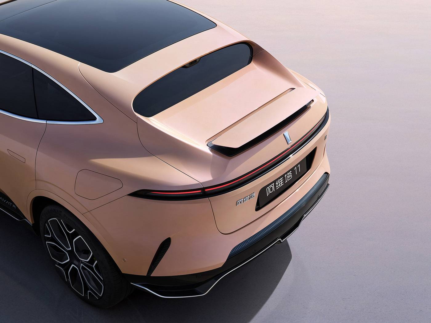 阿維塔11的外觀是非常有辨識度的。尤其是前臉和尾部造型,瞇瞇眼的LED日間行車燈和倒L形的大燈組,以及貫穿式的尾燈組,和標志性的后舷窗設計,都讓這款車的外觀,看上去與眾不同,不跳脫的同時,還有一種很莊重的感覺。