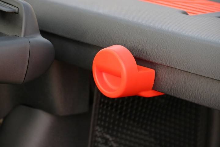 進(jìn)入雪鐵龍 Ami 的車室,可以發(fā)現(xiàn)車門采用傳統(tǒng)鑰匙解鎖搭配按壓方式開啟,駕駛座車門開啟方向向前,至于副駕駛座車門則與當(dāng)今車款開啟方式無異,別具特色,內(nèi)部開啟方式則是透過門板上方橘色的「拉力賽車輕量編織關(guān)門繩帶式門把」,車側(cè)窗戶的使用方式,貼近「蝴蝶窗」的模式,透過釋放外推的方式開啟,門板下方規(guī)劃的置物彈性網(wǎng),也使用橘色的跳色巧思。