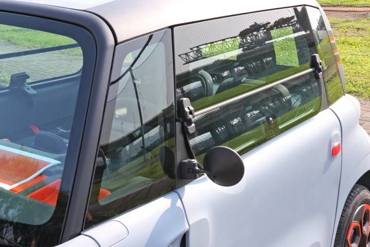 雪鐵龍 Ami 并無搭載當(dāng)今車輛常見的電動窗,而是采用上掀式類蝴蝶窗開啟方式。