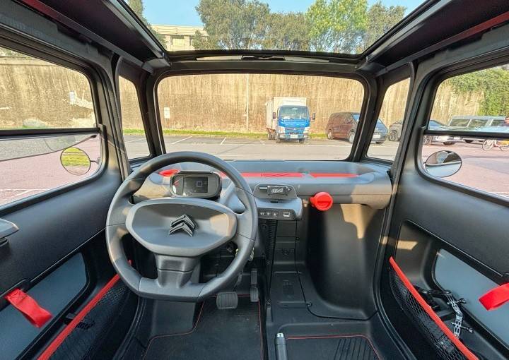 雪鐵龍 Ami 搭載全景玻璃車頂,搭配薄型化 A 柱設(shè)計,營造相當(dāng)開闊的駕駛視野。