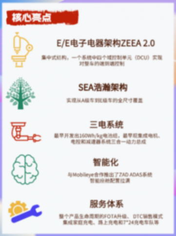 1.E/E電子電器架構ZEEA 2.0:采用集中式結構,一個系統(tǒng)中四個域控制單元(DCU)實現(xiàn)對整車的端到端控制,降低生產(chǎn)成本和車輛重量,提高通信效率,實現(xiàn)軟件升級。目前正在開發(fā)ZEEA 3.0。