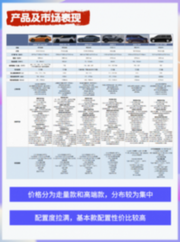 重點看走量款,001、007、009、X,起售價分別為27萬、21萬、50萬和20萬,定價在20-35萬區(qū)間,聚焦中高端。
