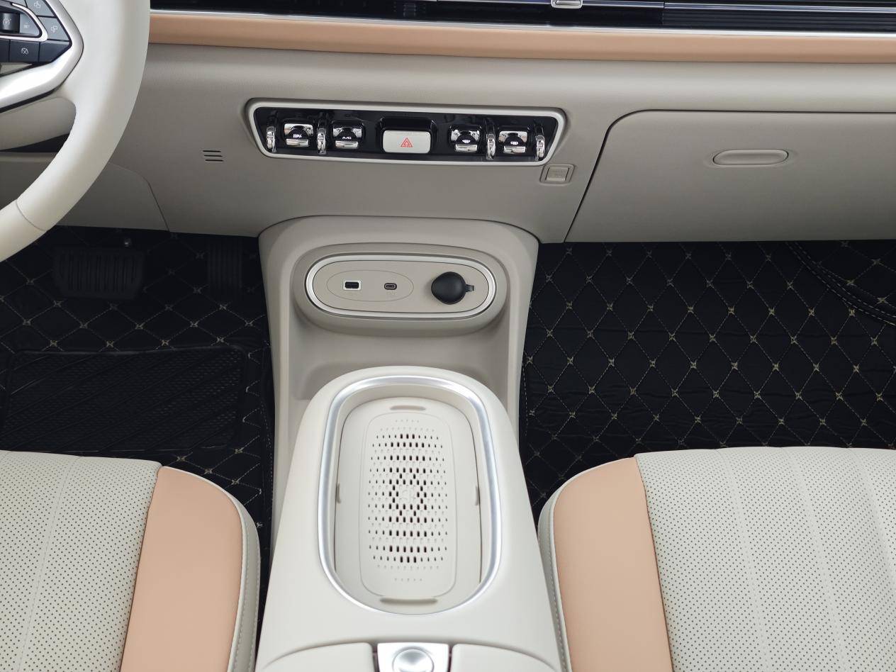 屏幕下方是空調控制區域,采用了樣式復古的撥桿,進一步提升了內飾的設計感。前排還配備了USB與Type-C接口,還有手機無線充電區域,為手機充電將會更加方便。換擋機構位于方向盤的后方,采用電子式懷擋換擋,因此前排中央扶手區域顯得更加簡潔。