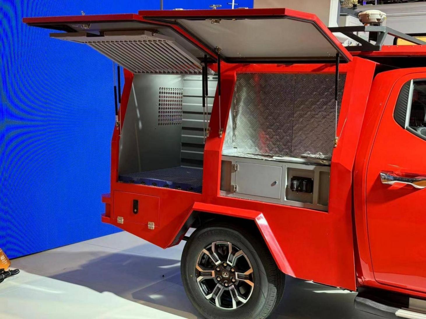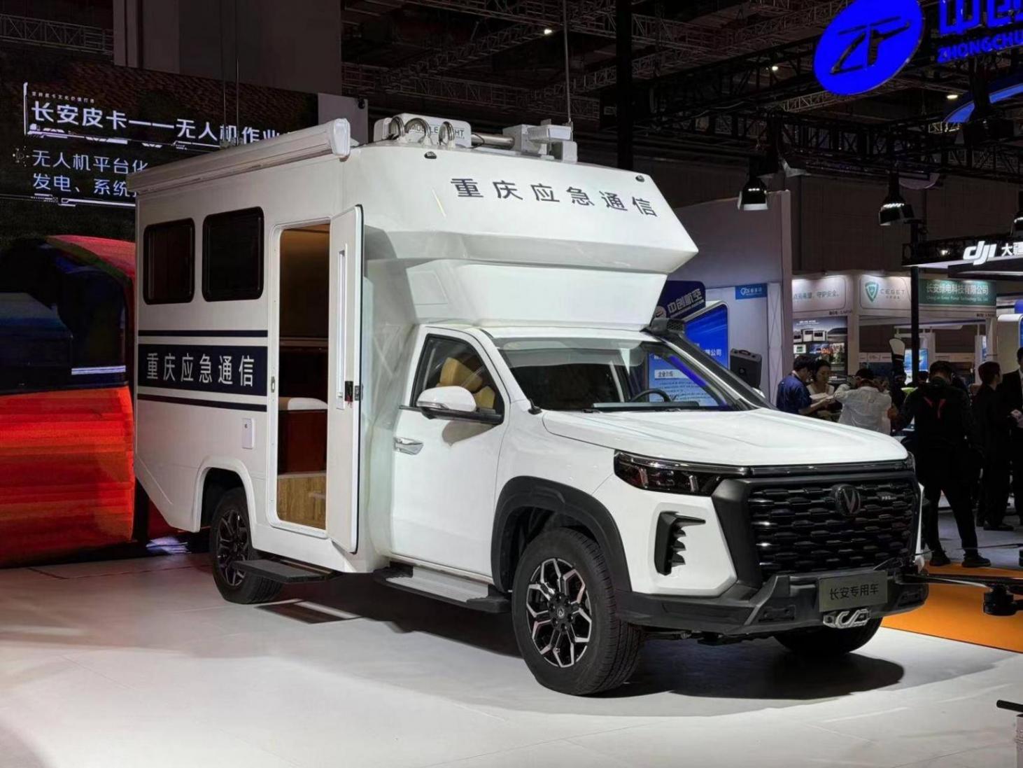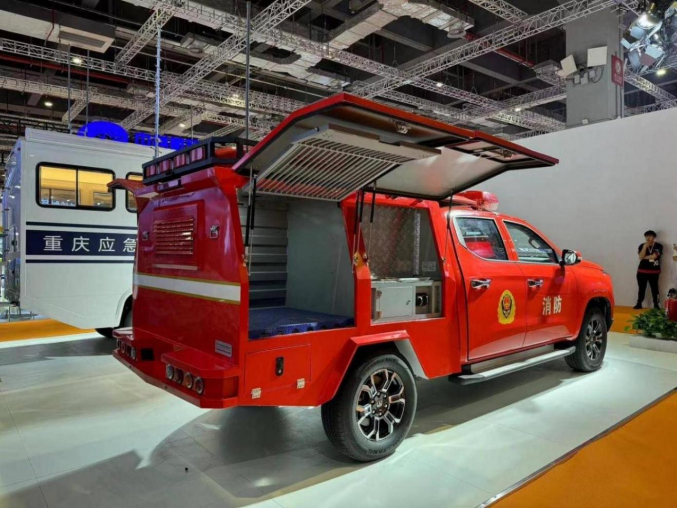 在應(yīng)急減災(zāi)和救援市場,皮卡車型始終占據(jù)重要地位。而在這場盛會上,全球首款超級增程皮卡——長安獵手,攜三款特色定制車型:應(yīng)急通信車、小型救險車以及多功能搜救指揮車,大放異彩,充分展示了長安獵手在應(yīng)急減災(zāi)領(lǐng)域的領(lǐng)先技術(shù)與創(chuàng)新能力,也成為長安獵手增程式動力皮卡展示硬核實力的舞臺。這款搭載了超級大增程技術(shù)和先進移動電平臺的皮卡,在創(chuàng)新皮卡新價值的同時,展現(xiàn)出在應(yīng)急市場的廣闊應(yīng)用前景和多功能優(yōu)勢。