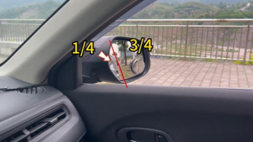 右后視鏡,車身占1/4,天占1/3,地占2/3。