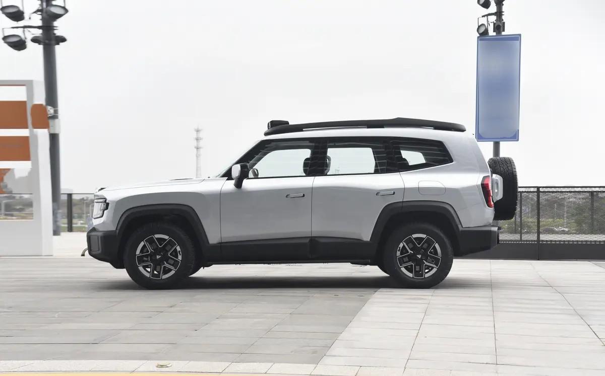 尾部造型方正硬朗,配備了背負式備胎,尾門采用側開結構,尾燈則是獨特的“C”形狀,樣式比較醒目,底部搭配寬大的黑色保險杠,凸顯硬派范。