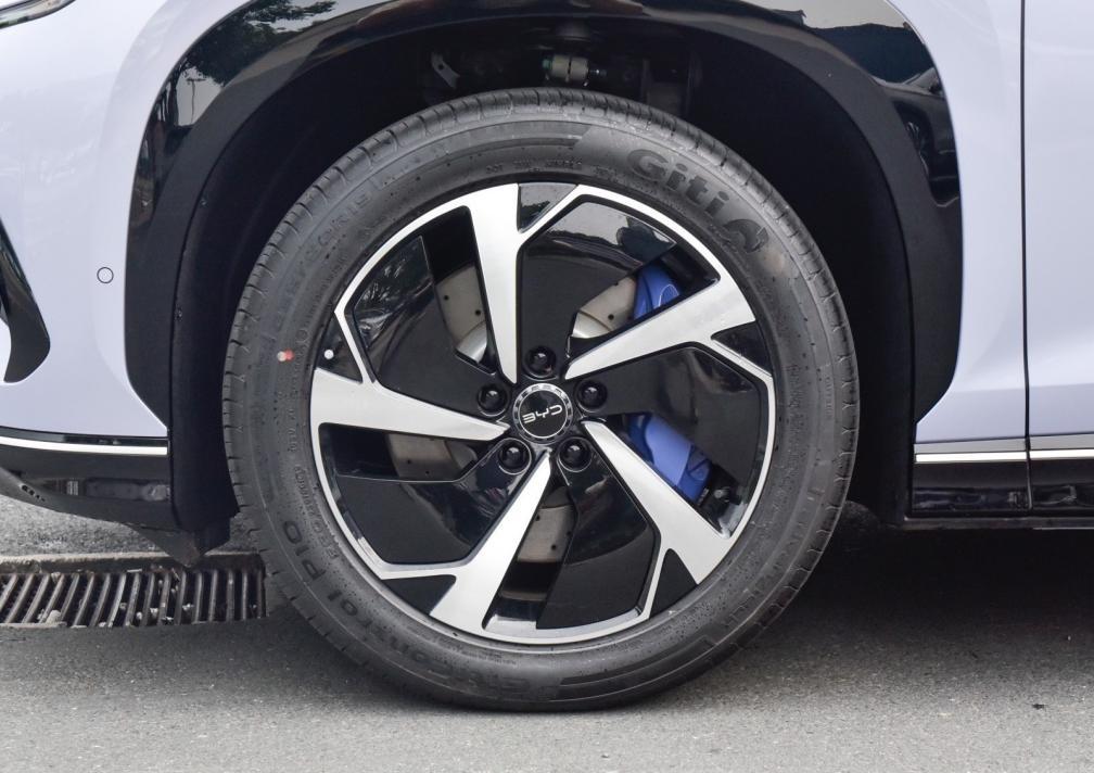 提供19與20英寸兩種輪圈,后者僅頂配四驅版采用,雙色旋風造型運動感不錯。輪胎規格為235/50 R19,匹配佳通Control P10系列產品,干濕地抓地性出色,靜音與滾阻一般。