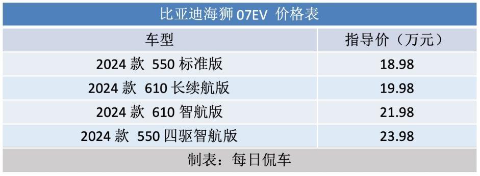 5月17日,比亞迪海獅07EV上市,四款車型售價區間為18.98—23.98萬元。作為比亞迪e平臺3.0 Evo的首款車型,新車在電驅系統、熱管理、充電、座艙與智能駕駛、底盤等五大方面,相比e平臺3.0的產品都有顯著提升。此前,比亞迪在中級轎跑SUV領域推出過騰勢N7、宋L等不同價位車型,意圖與特斯拉Model Y抗衡,但收效甚微。此次在新平臺的加持下,海獅07EV在一些硬指標,如極速、快充功率、整車能效等方面,與Model Y已經接近很多,加上天神之眼智駕系統彌補了智駕的短板,初步具備與Model Y正面較量的實力。近期,我們對海獅07EV 2024款610智航版進行了實拍,一起看看新車的表現。