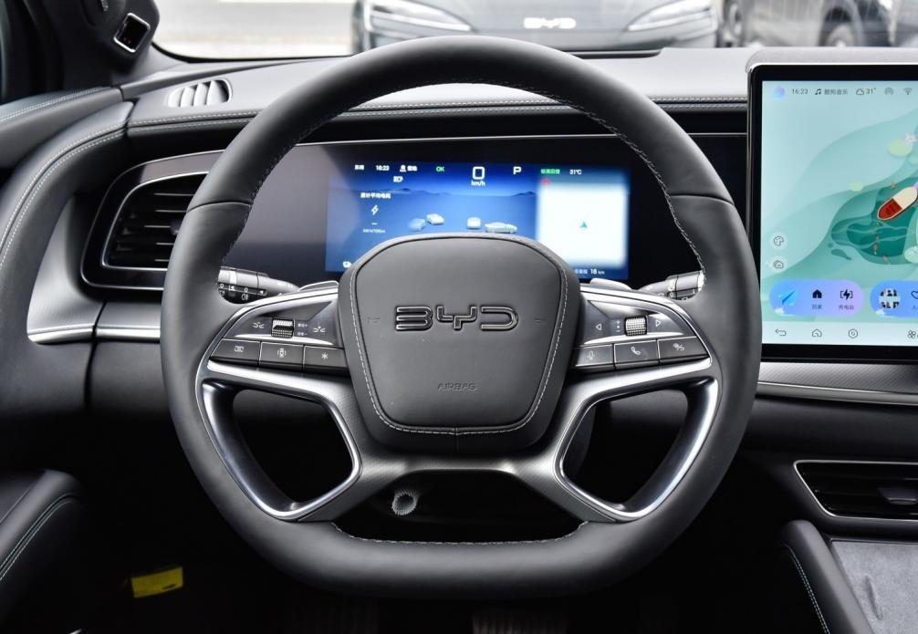 高配車型方向盤是真皮材質,尺寸合適、觸感舒適。上方鏤空較大,便于觀察儀表屏。橫幅上采用按鍵與撥桿/滾輪控制,控制效率較高。左側用來控制標配的L2級駕駛輔助系統,其中兩個高配車型提供天神之眼高階輔助系統,實現高速NOA領航駕駛,可自動上下匝道、自動變道超車、主動避障等功能,跑高速更輕松更安全。另外,這套系統的自動泊車的適用場景也更加豐富,實用性更高。