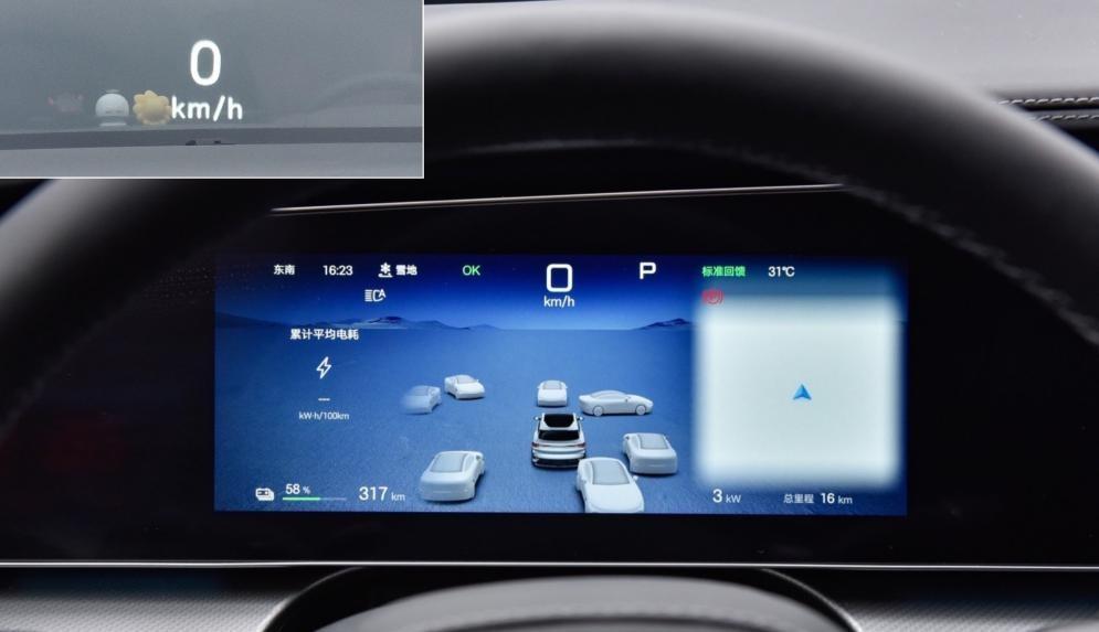 智能版的液晶儀表屏以環境感知畫面為主,與新勢力更接近,導航信息和行車信息讀取方便。兩個高配車型還提供50英寸的AR-HUD抬頭顯示,行車中不用低頭、更安全。