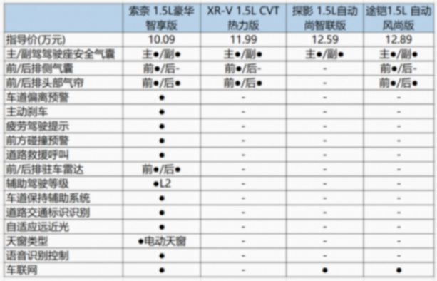 當然,作為一款國內市場的全新車型,索奈除了要與同價位新能源車競爭之外,XR-V、探影、途鎧等同級合資燃油車也是繞不開的對手。