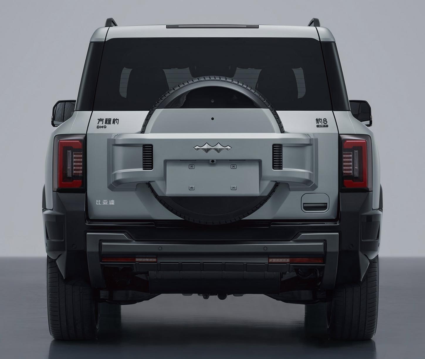外觀方面,新車整體延續SUPER 8概念車的設計理念,采用方程豹全新設計語言,前臉方框狀6孔式前格柵,造型兇悍。格柵中間位置處加入方程豹LOGO,彰顯比亞迪高端越野SUV的身份。格柵上部加入貫穿式燈帶,連接兩側半方塊狀的大燈組,讓整體前臉形成倒“凸”字形,顯得十分的硬朗。