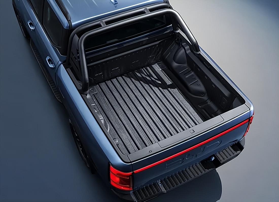 由于采用皮卡車型,車身后半部擁有很大的車斗可以用來裝卸貨物。