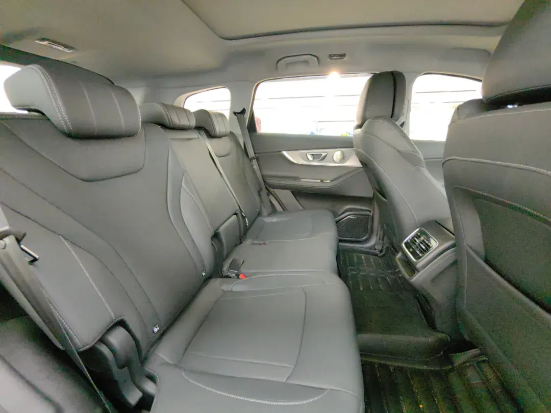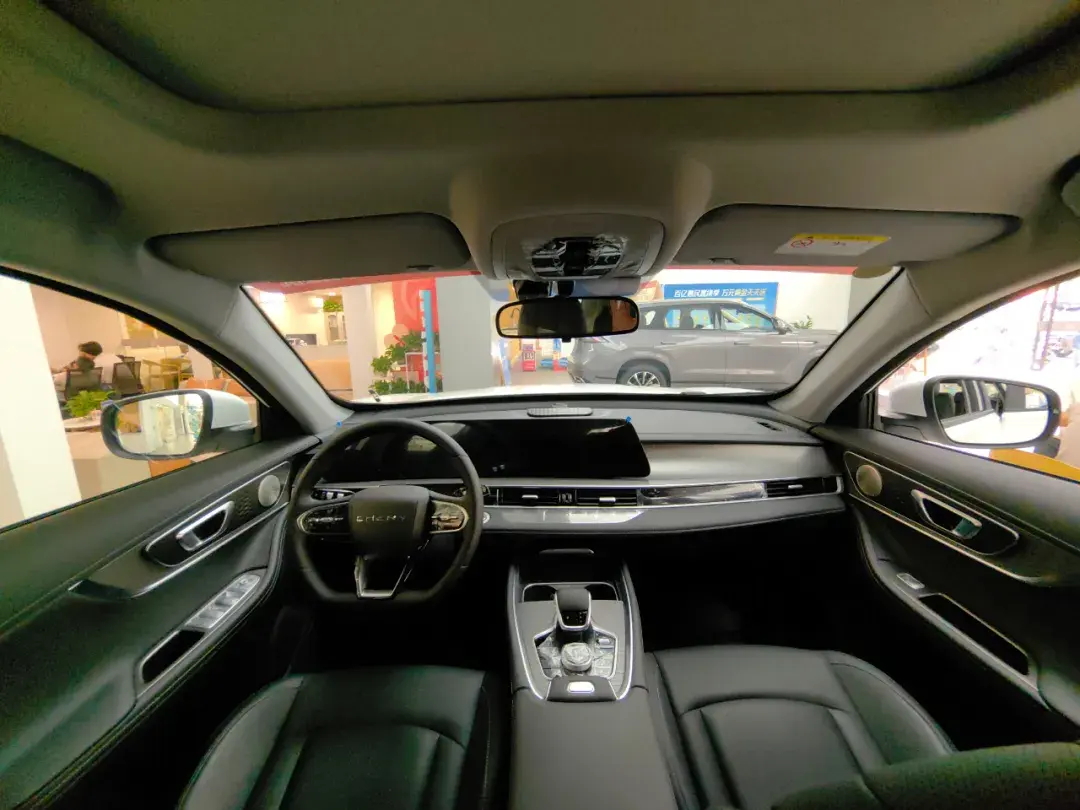 內飾方面,新車營造出很強的科技感,雙幅式方向盤,中控臺采用仿金屬裝飾,檔把在中間的吧臺處,新車在扶手箱、座椅、門把手等多處位置均采用皮質包裹,內飾富有檔次感。