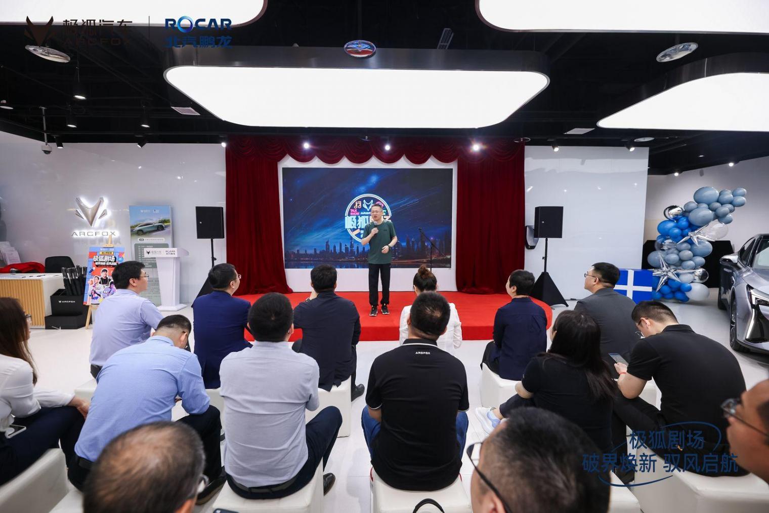 本次活動嘉賓有ARCFOX極狐汽車北京鵬龍興元汽車銷售服務有限公司總經理-王闖先生、北汽鵬龍新能源銷售事業部 副總經理-董世超先生、北汽財務公司總經理助理、汽車金融事業部總經理-劉瑩女士、北汽新能源總經理助理-孫貴洋,以及北京、天津汽車媒體和百萬級網紅加持共同見證本次開業盛典。