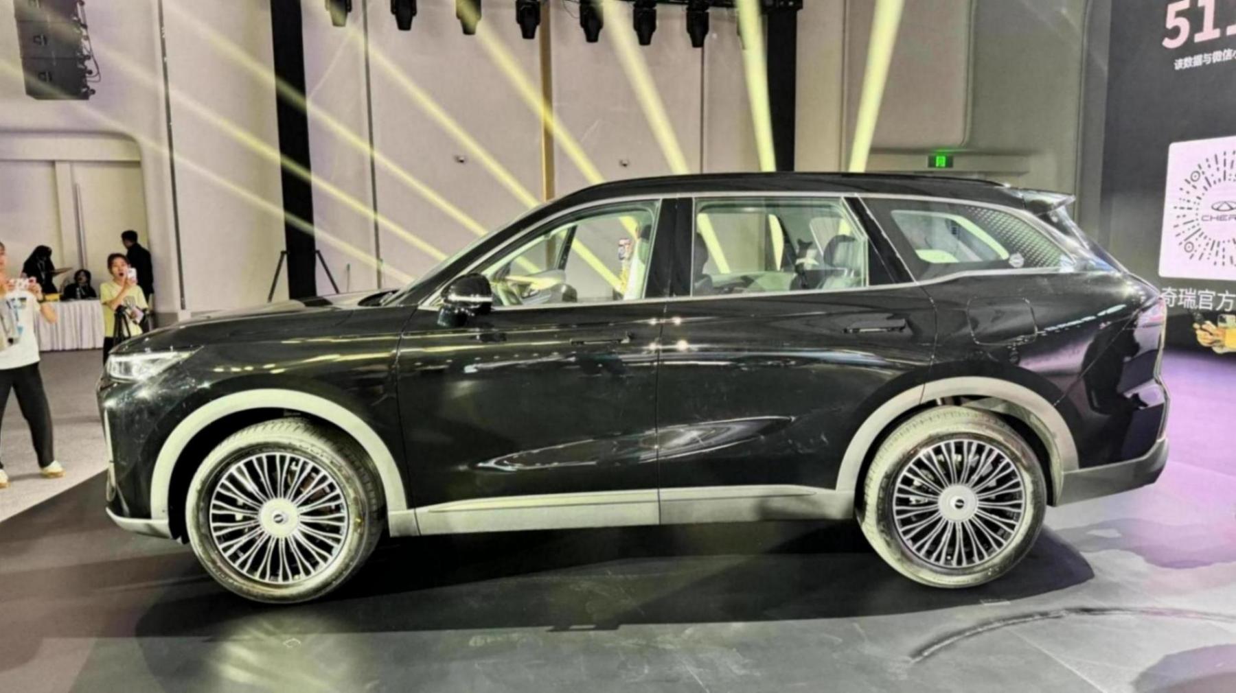 平直硬朗的多腰線設計,富有很好的力量感。寬大的輪眉,超高的離地間隙,同時輪眉和全包圍用黑色護板包裹,搭配10輻超大尺寸鋁合金輪轂,讓整車看上去擁有很好的通過額能力。新車長寬高分別為4795*1930*1738mm,軸距為2820mm,整體尺寸與瑞虎9相當。