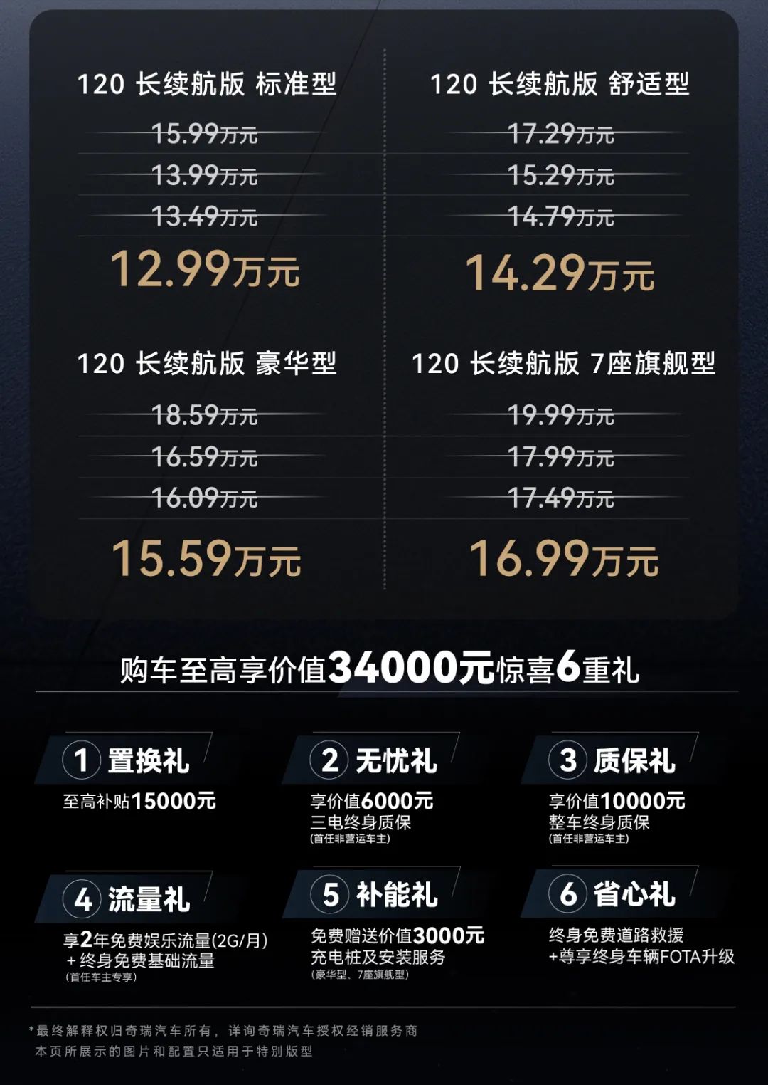 風云T9是奇瑞風云系列第二款車型,一款插電式混動中型SUV,提供四款選擇,正式售價為12.99萬元至16.99萬元。在公布售價的同時,奇瑞汽車還帶來了一系列購車大禮:包括置換至高1.5萬元、三電終身質保(首任非營運車主)、整車終身質保(首任非營運車主)、首任車主終身免費基礎流量+2年免費娛樂流量,以及充電樁及安裝服務、終身免費道路救援和FOTA升級等,禮包總價值高達3.4萬元。