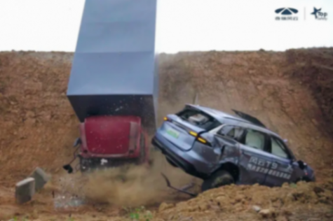 在此前的“國內首個側碰后墜落挑戰”中,風云T9先被一輛4.5噸重的卡車撞擊,之后墜入8米深的坑中,結果風云T9的A、B、C柱未發生結構性失效,約束系統也未發生明顯變形,安全氣囊迅速響應,E-call緊急呼叫功能也在碰撞后順利啟動,驗證了風云T9在安全領域的卓越水準。